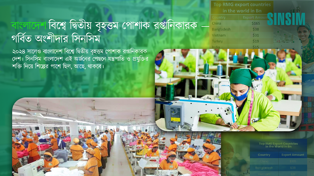 এই বিশাল অর্জনের পেছনে রয়েছে শক্তিশালী টেক্সটাইল শিল্প, নির্ভরযোগ্য প্রযুক্তি এবং বিশ্বমানের প্রোডাকশন ইনফ্রাস্ট্রাকচার—যার অন্যতম চালিকাশক্তি SINSIM Embroidery Machine। বাংলাদেশের শীর্ষস্থানীয় এক্সপোর্ট জায়ান্টরা, যেমন—Youngone Corporation, Sara Group, Zara Group, বাংলাদেশ সেনাবাহিনী, কায়েস গার্মেন্টস, UBF Bridal Ltd. এবং আরও অনেকেই, SINSIM-এর অসামান্য প্রযুক্তি ও নির্ভরযোগ্যতাকে তাদের উৎপাদনে অবিচ্ছেদ্য অংশ হিসেবে বেছে নিয়েছে।